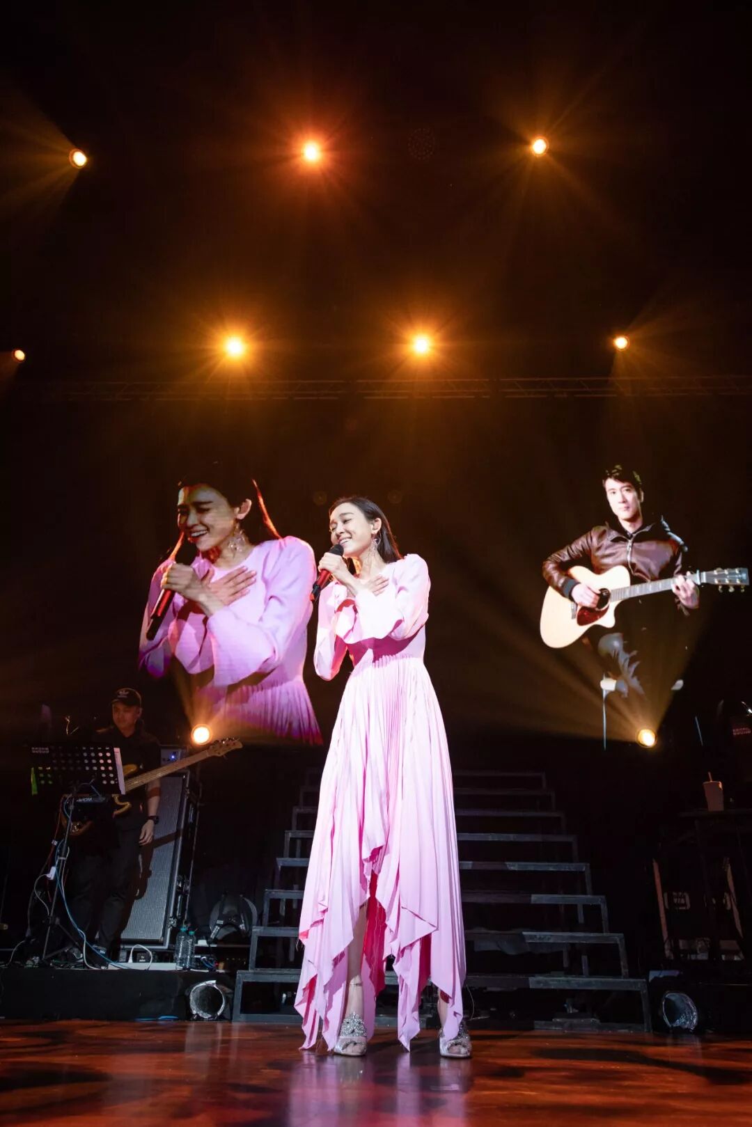 范范现场与粉丝亲密互动,粉丝们也很大声喊道“我们爱你!”,让她笑容不断!范范更是说到:“今晚是我们很亲近的一夜,我想要跟大家一起分享我的生活。”